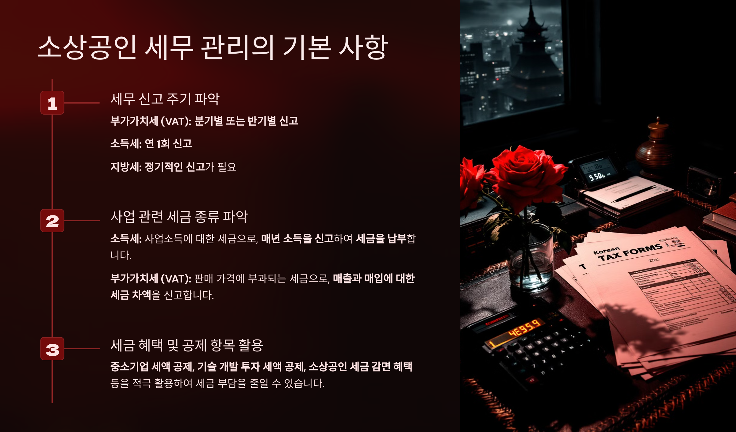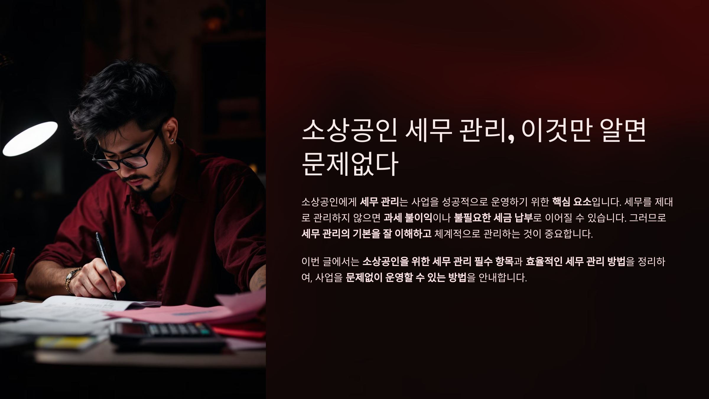 소상공인에게 세무 관리는 사업을 성공적으로 운영하기 위한 핵심 요소입니다.