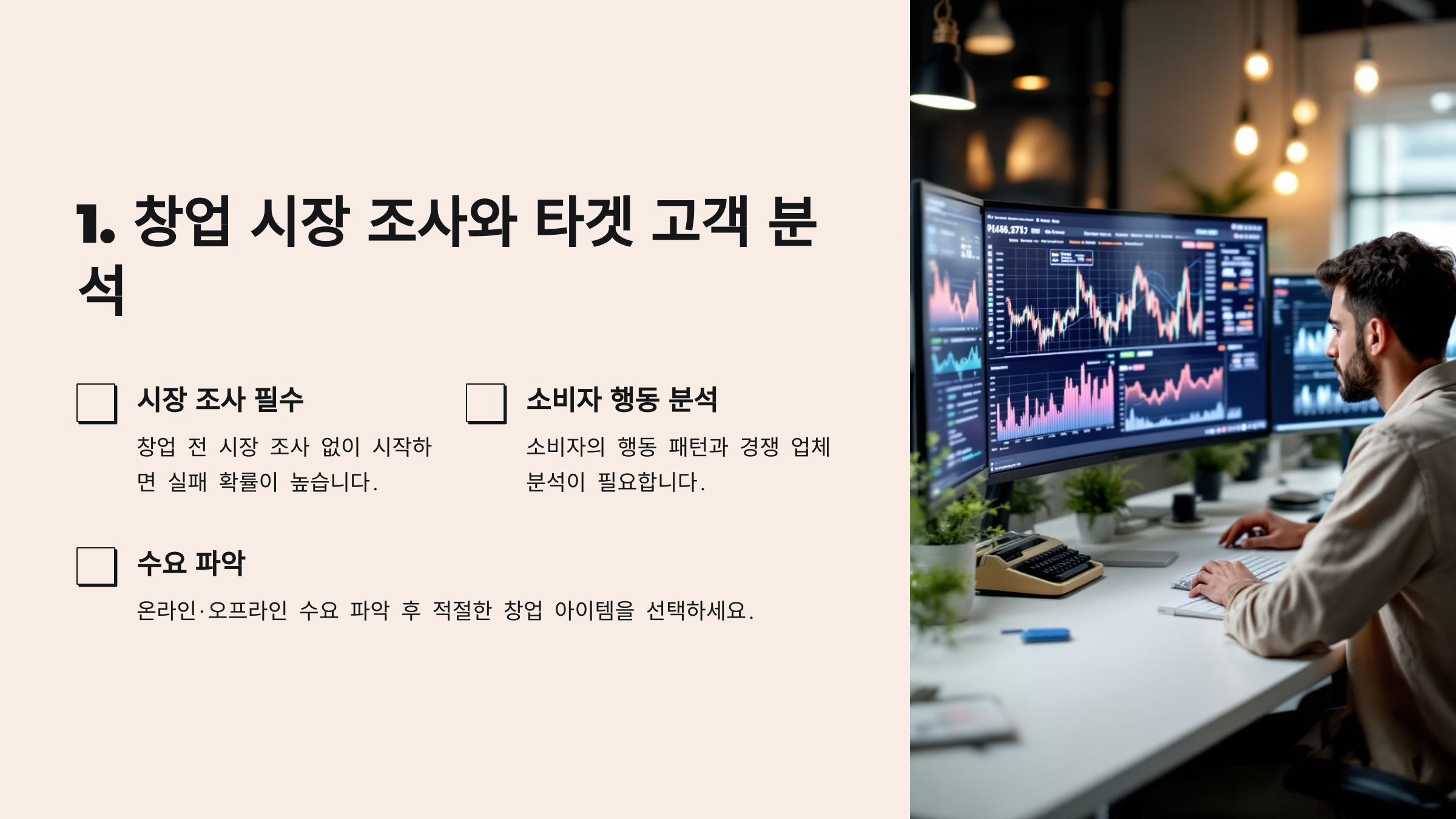 특히, 2025년에는 창업 경쟁이 더욱 치열해지면서 철저한 전략 없이 시작하면 생존이 어려운 상황이 될 수도 있습니다.