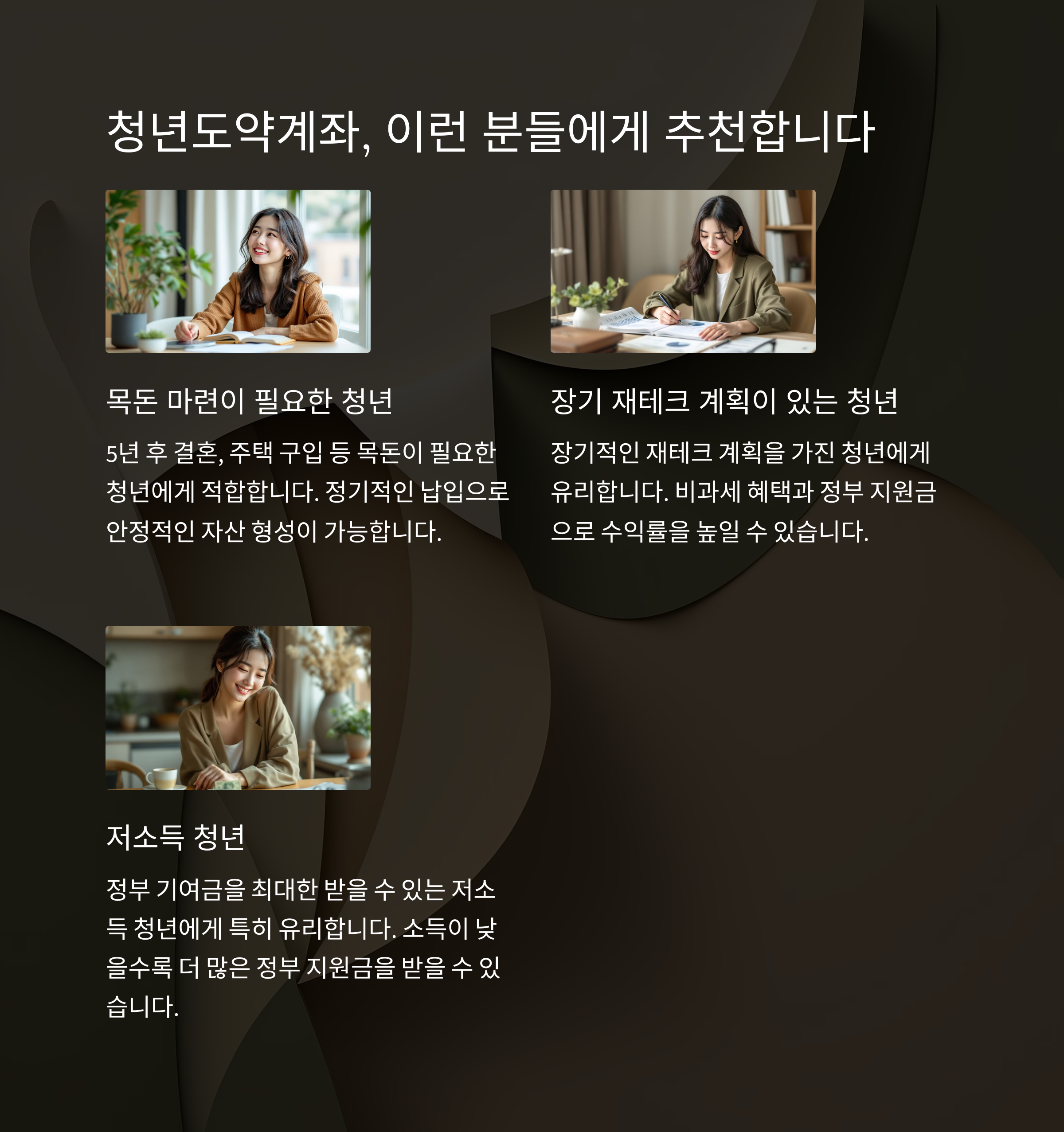 ✔ 장기적인 재테크 계획이 있는 청년