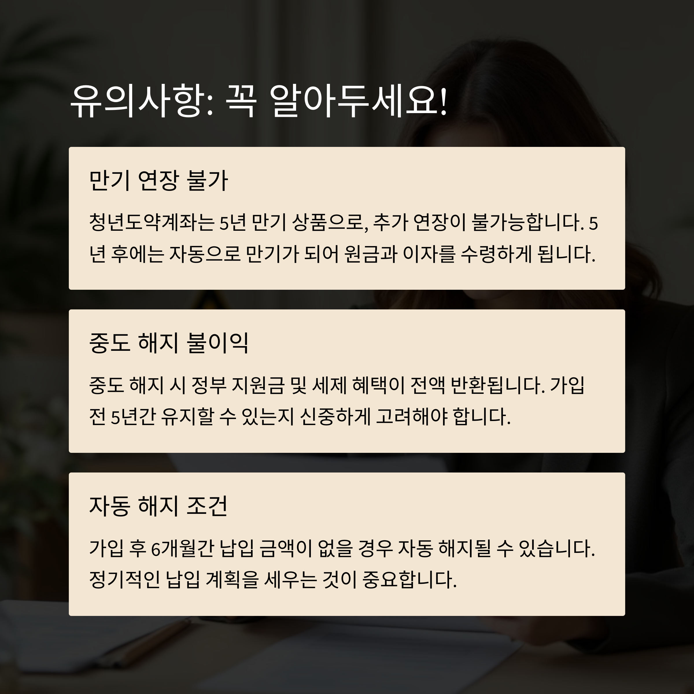 중도 해지 시 정부 지원금을 돌려줘야 하므로 신중한 가입 필요