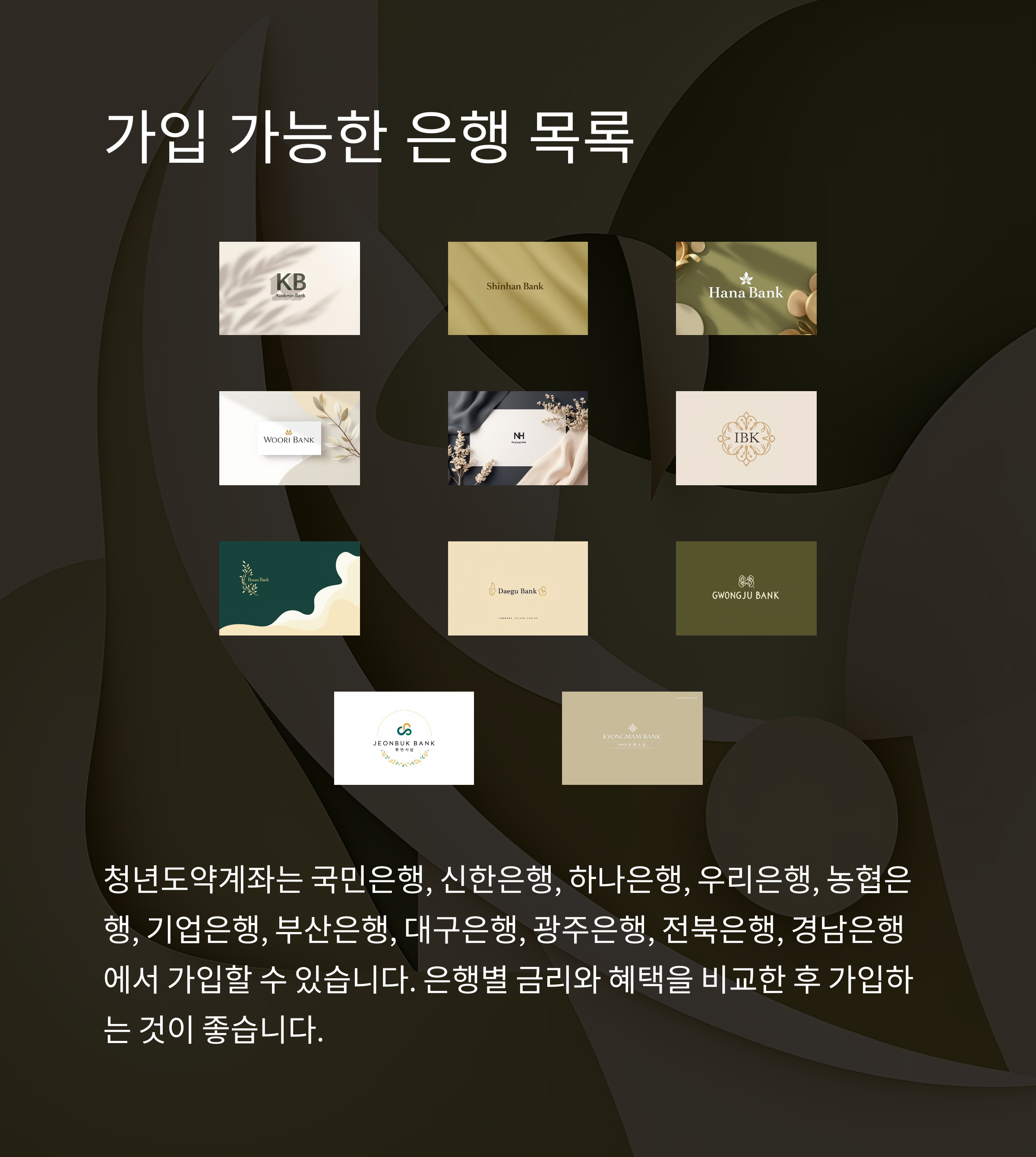 가입 가능한 은행 목록